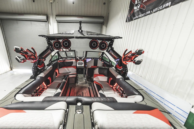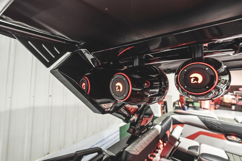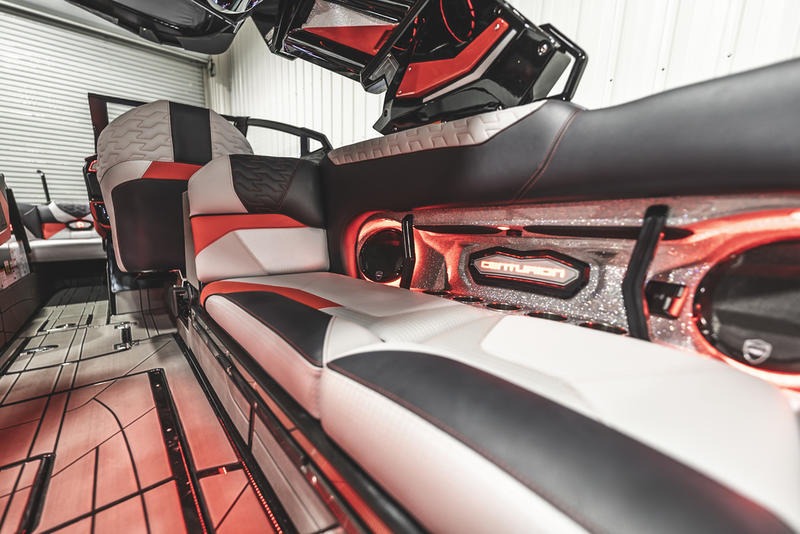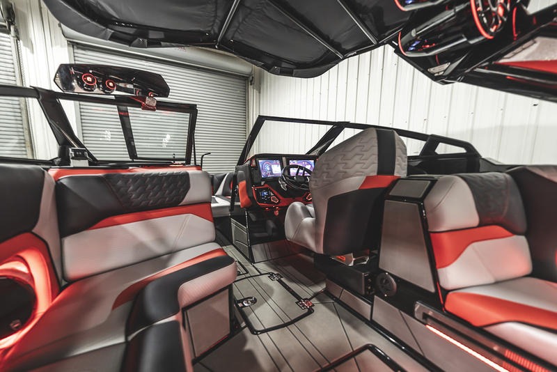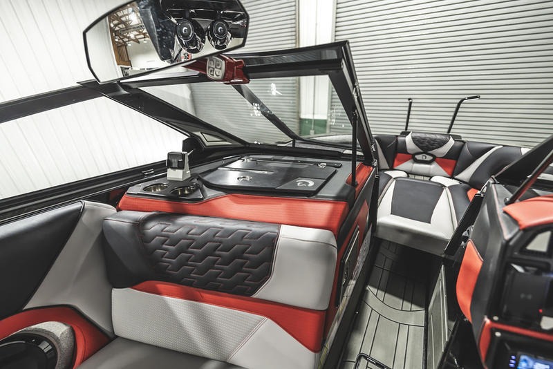 The Ri245 hits the sweet spot for advanced wave and wake sports enthusiasts with a 24.5’ powerhouse that excels in performance and comfort. Offering up to 5650 pounds of ballast in a luxuriously appointed vessel that accommodates up to 16 people, the Ri245 is both a performance powerhouse and a comfy ride. With ballast distributed in seven separate locations throughout the boat, the Ri245 rides level, even when fully loaded and towing a rider. Drivers will appreciate the horizon level view from their seat, while riders will be thrilled with the long, pushy waves created by the level attitude. The new Captive Touch Side by Side High-Definition Dash System enables instant control. The available Predator Power Tower (PPT) adds more refinement to make life better for water sports boaters with its fixed bimini to provide shade and an array of racks for specific equipment. Set the mood with your choice of exceptional sound systems including the all new SurroundFire Sound System by Roswell.